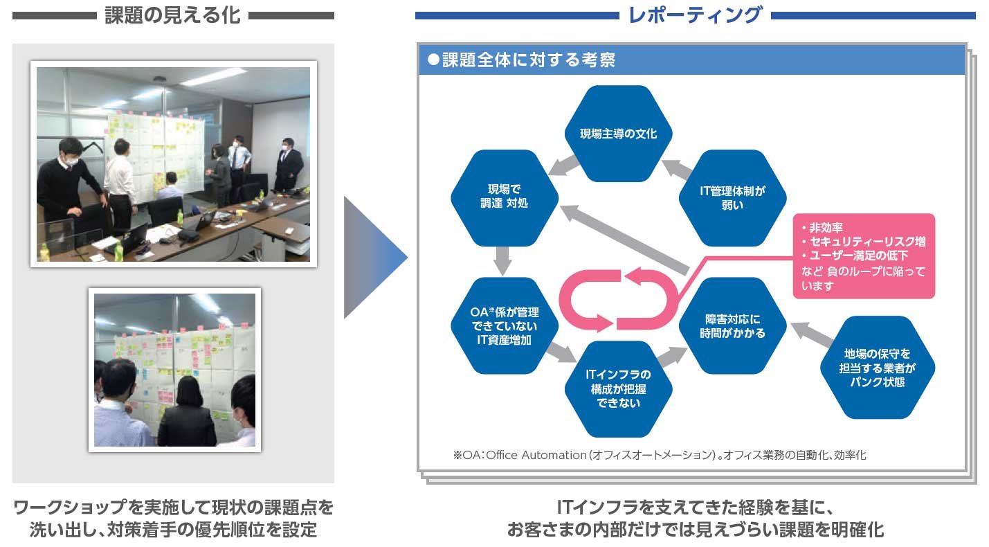 こうして各社からの提案を受けた同社は、比較検討を実施。その結果、満場一致で選ばれたのがユニアデックスだった。木場氏はその理由を次のように明かす。「まず、全国規模で対応できることが基本条件。その上で各社の提案を比較したときに、ユニアデックスの提案が一番、確実に実行できるという安心感がありました。当社の情報システム部門と伴走する頼れるパートナーになっていただけそうだと感じました。他社は担当者のスキルや経験に依存する印象があったのに対し、ユニアデックスのITコンサルティングサービスは提案段階からプロセスやメニューが明確で、しっかり仕組み化されていました。長いお付き合いの中で仮に担当者が変わったとしても、持続して支援してくれる期待がありました」
