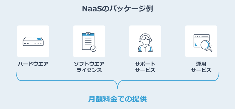 NaaSは単なる機器のレンタルではありません。ネットワークを「使う」ために必要なものが、パッケージとして提供されます。