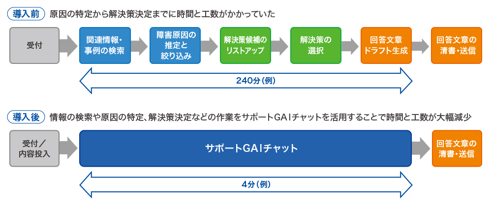 サポートGAIチャット導入前後の業務フローの比較
