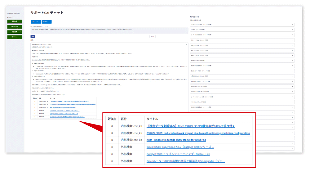 この調査工程がサポートGAIチャットを利用することで短縮されます。もちろん生成されたドラフトに対する人間によるレビューや修正は欠かせませんが、サポートエンジニアの大幅な工数削減につながります。