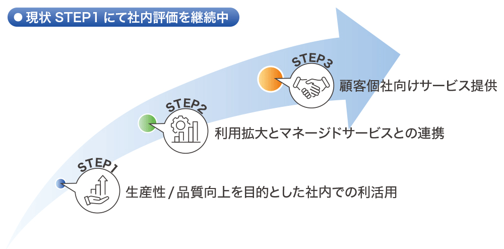 池内:STEP1は、社内のサポート部門での利用フェーズです。いわゆる「カスタマーゼロ」のフェーズで、まずは社内で徹底的に使い、品質を整えて業務利用できる形にすることが喫緊の目標となります。このハードルを越えない限り、STEP2以降の展開はあり得ません。
