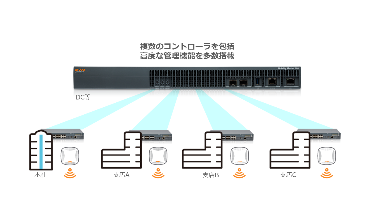- 大規模かつ多拠点の場合でも、構造化された無線通信環境を容易に構築することができます。また、無線ネットワークの全ての変更、アップグレードおよび最適化は単一拠点から実行できるなど集中的に管理することも可能になります。これは、個別の無線アプライアンス製品の展開および管理に伴って発生していた運用コストを根本的に削減します。