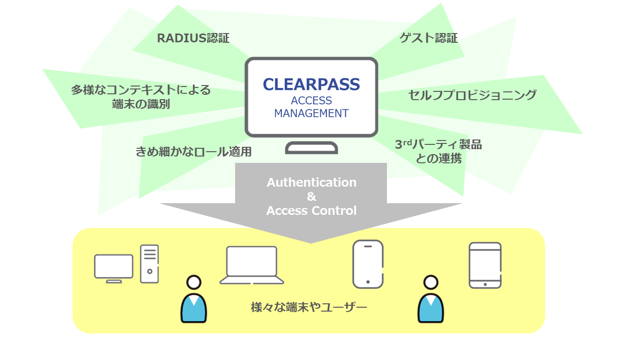 多機能RADIUSサーバーです。単体で柔軟な認証設定が可能であり、ゲスト認証やセルフプロビジョニングの機能もGUIで簡単に設定が出来ます。コントローラーやスイッチ、3rdパーティー製のセキュリティー製品と連携することで更に多彩な認証・アクセス制御・セキュリティー機能の使用が可能です。