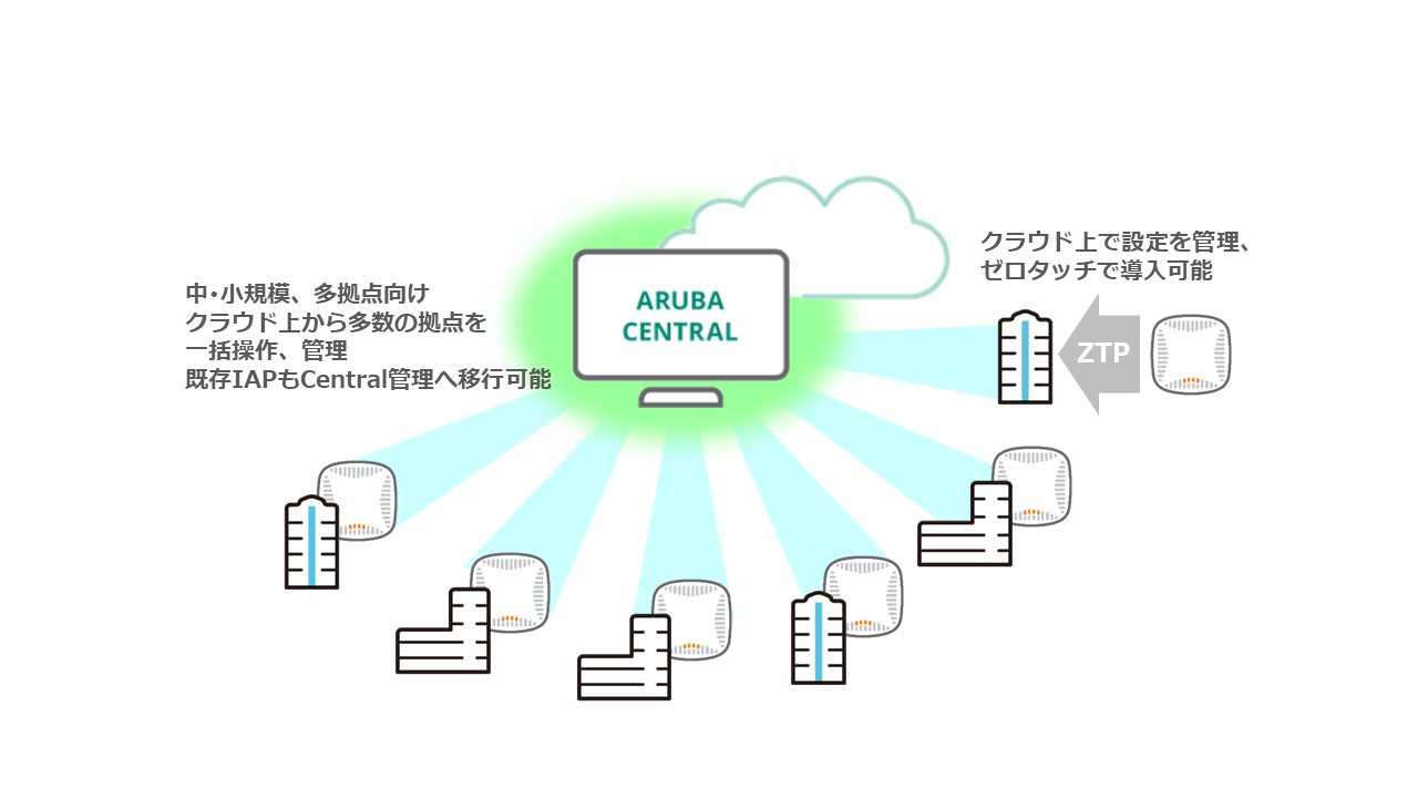 設定を全てクラウド上で管理することにより、ゼロタッチでのInstant AP導入も可能となってります。既存のInstant AP環境も容易にクラウド管理へ移行可能な上、サブスクリプションを停止することで、クラウド管理をやめIAP単体での動作に切り戻すことも可能となっており、状況に合わせて柔軟に動作形態を移行頂けます。