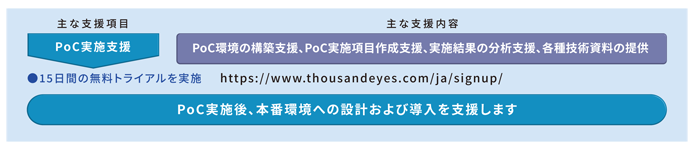 ThousandEyesを導入する前に、利用効果を体感できるPoCを実施し、導入までワンストップで支援します。
