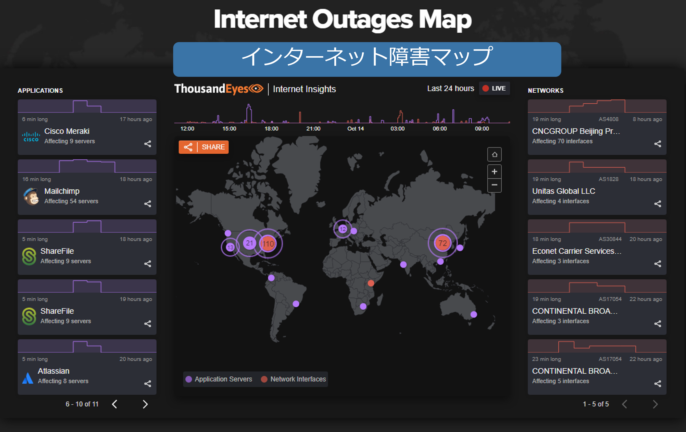 - 世界190都市以上に配置した監視ポイントからインターネットサービスを監視