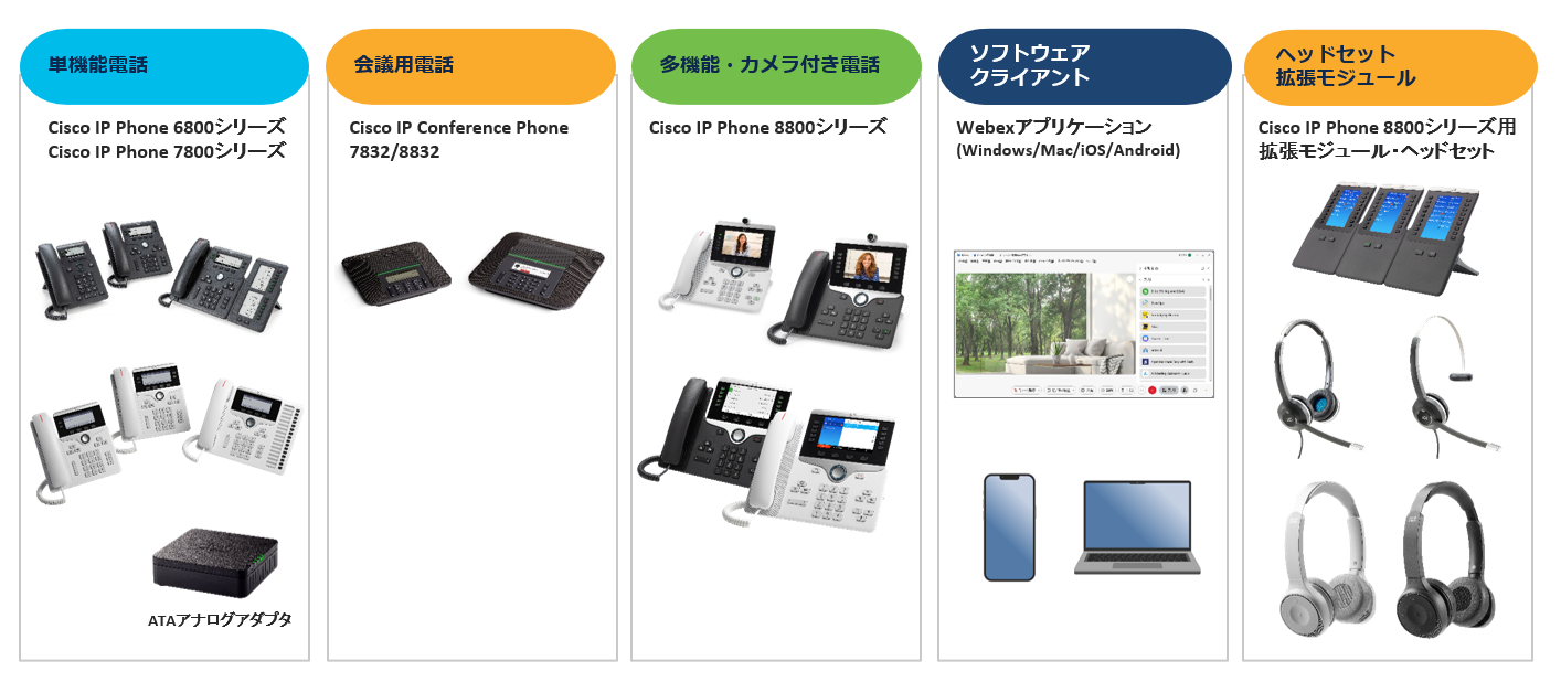 Cisco IP電話 6800/7800/8800シリーズ デスクフォン、アナログATAやビデオデバイスの統合管理による、一貫したユーザーエクスペリエンスをご提供します。