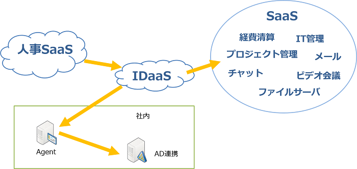 各ADの横にIDaaS Agentを設置し、ユーザー情報をIDaaSに収集⇒IDaaSディレクトリに格納