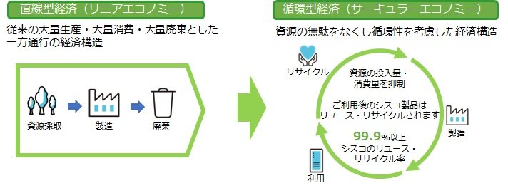 ユニアデックスがゴールドパートナーを務めるシスコは、2021 年に「2040 年までに温室効果ガスの排出量を実質ゼロ(ネットゼロ)にする」という公約を掲げています。製品の設計、管理、梱包、修理、再利用、リサイクルなどの製品ライフサイクル全体を通して、サステナビリティとサーキュラーエコノミーの原則を事業全体に組み込むことによる変革を推進しています。このことからユニアデックスは、お客さまのサステナブルな IT 導入を支援するために、ハードウエアのライフサイクル全般のコーディネートを行う取り組みを開始しました。