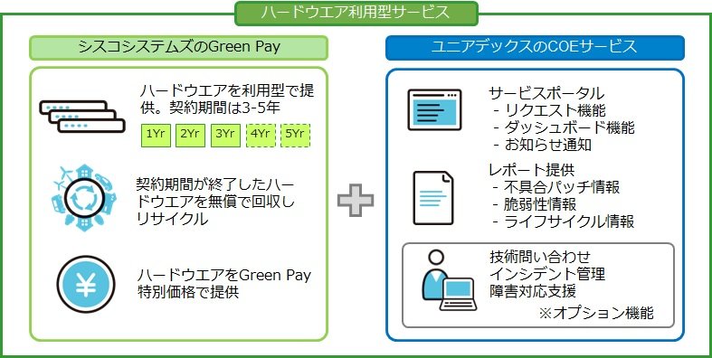ユニアデックスが提供するGreen Payは、Green Payに当社の運用支援サービス「COE(Center of Excellence)サービス for ITSM(以下、COE サービス)」を組み合わせてサービスを提供します。