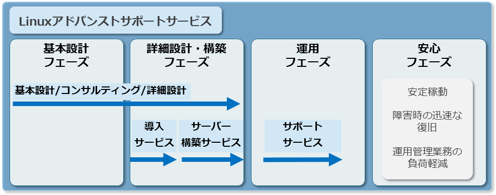 Linux導入サービス | OS導入パラメーターシートに従い、Linuxのインストールと動作確認作業を実施します。 |