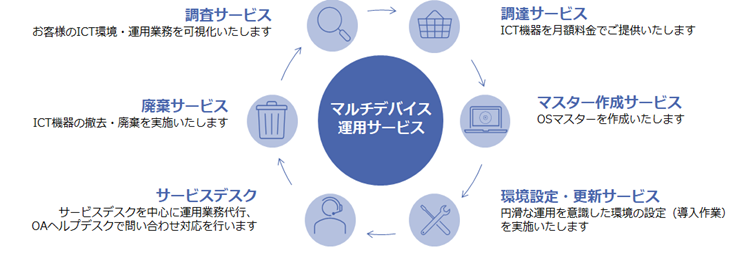 デバイスの管理だけではなく、PC運用管理業務におけるさまざまな課題を解決するため、随時サービスを追加しております。