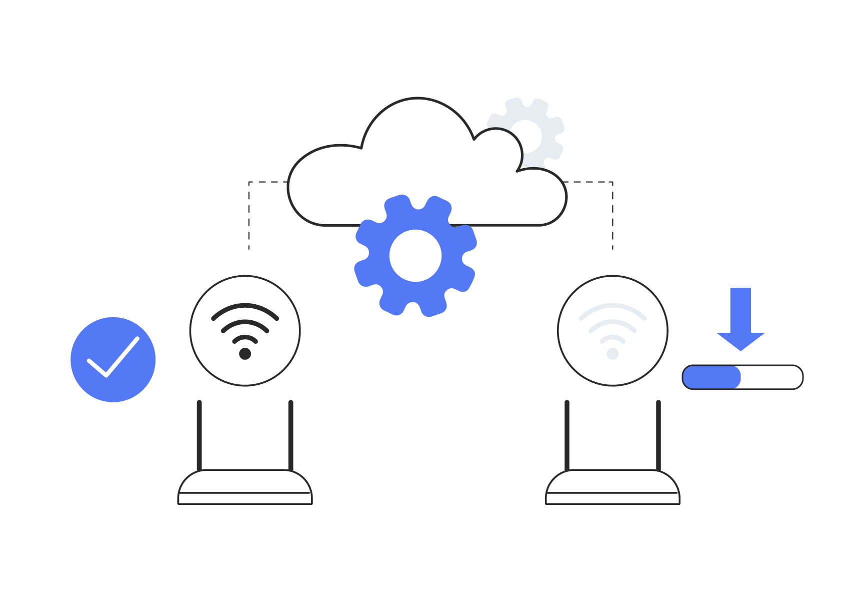 新機能はファームウエアアップデートにより、自動でお客さま環境に適用されます。ファームウエアアップデートは事前に通知の上、お客さまが指定した時間帯に実行します。また、AP単位で行うため、ネットワークが切断することなくアップデートが可能です。