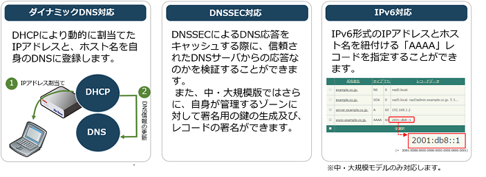 また、脆弱性対策などバージョンアップが必要な場合でも短時間で作業が行え、ネットワークへの影響を最小にします。このためDNSに精通していない管理者でも簡単に運用することができます。