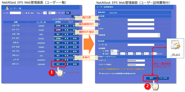 - NetAttest EPSは、運用に専門的な知識を要求しないプライベートCAを標準で搭載しています。