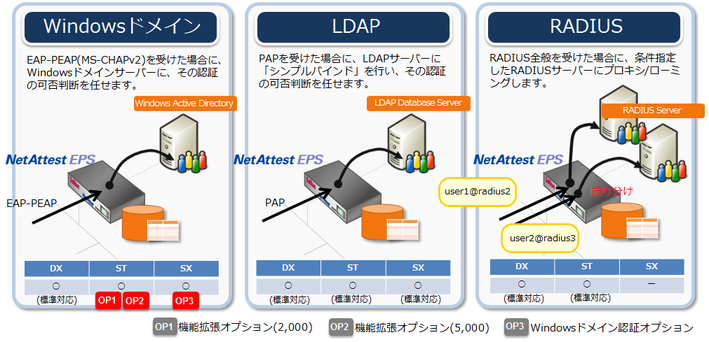 - NetAttest EPS は、外部DB/認証サーバーと連携することができます。