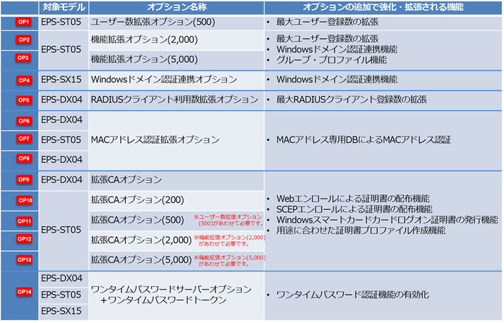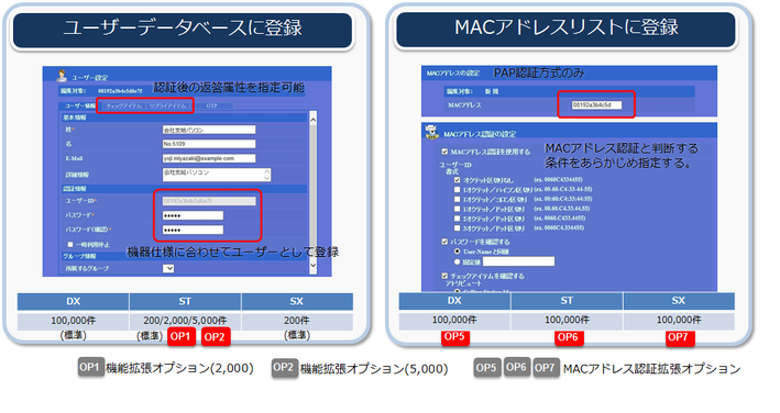 - 標準機能で対応しますが、オプションを追加することでより大量のMACアドレスを登録できます。