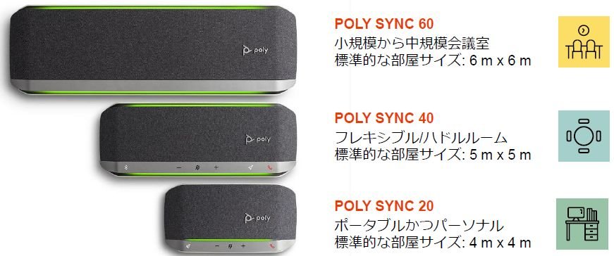 ハドルスペース、会議室、デスク、移動中、カスタマーサービス、ホームオフィスに製品を展開できるのがPolyの強みです。