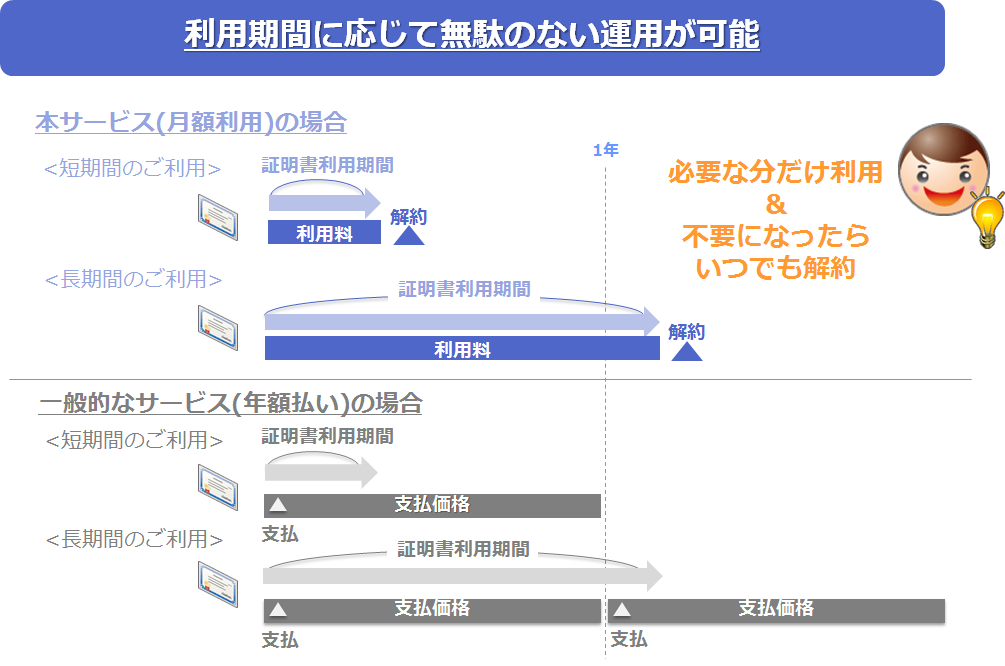 - ご利用期間は1カ月から月単位でご契約いただくことが可能です。