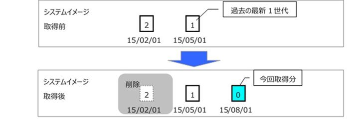 ・標準の取得時間は0時、保存世代数は日時7世代、週次4世代となります。変更を希望される場合はご相談ください。